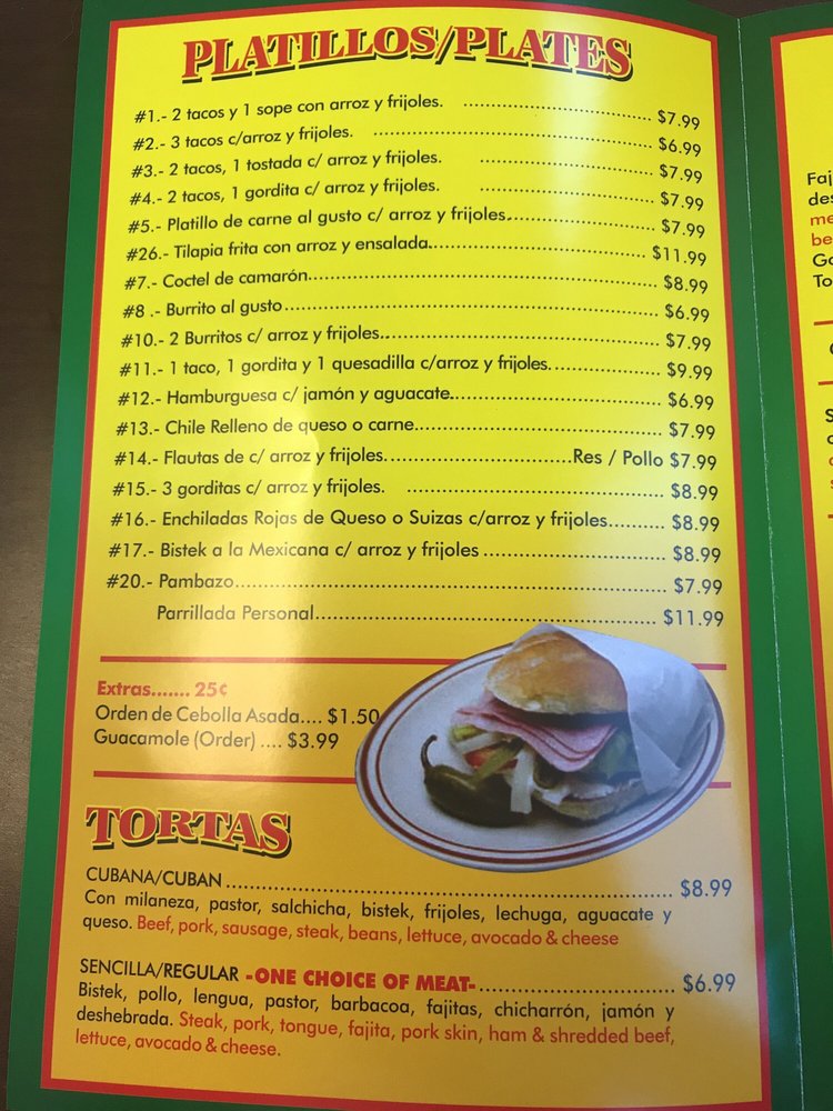 Highlights include the succulent pastor street tacos and unique Tortas, featuring enticing combinations like the Cuban Torta with Mexican sausage and cheese. Diners rave about the generous portions and flavorful dishes that promise to satisfy both hunger and cravings. Customers appreciate the catchy ambiance, excellent service, and churros that add a sweet finish to their meals.