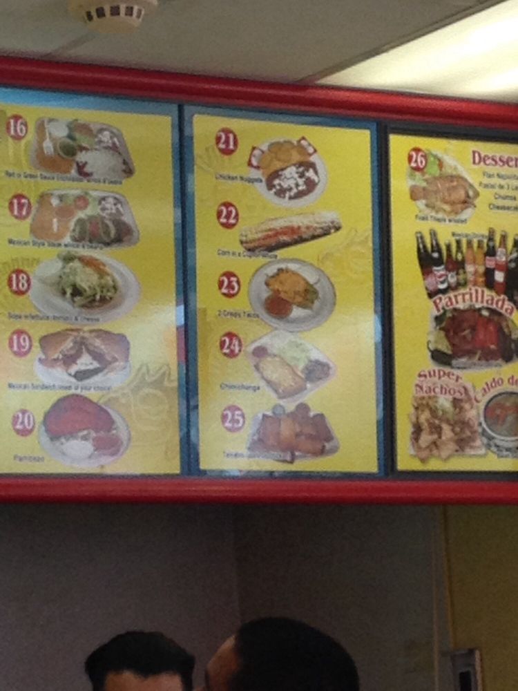 Regular. 1 choice of meat. Chicken, tongue, pork, steak, pork skin, ham, shredded beef, beans, avocado, and cheese.